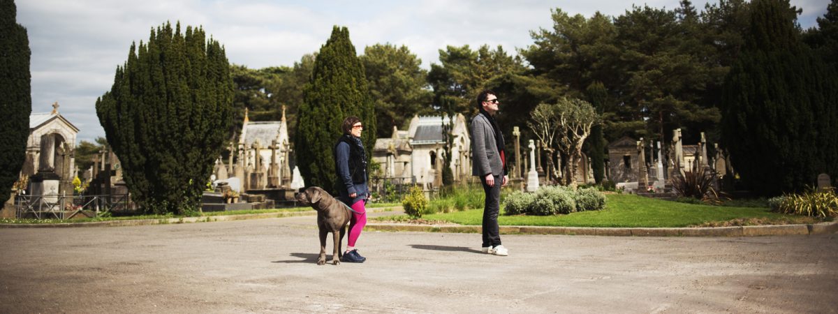 Passé maître dans l’art de décaler le rapport aux corps et au mouvement, David Rolland conçoit la danse comme une expérience collective dans l’espace public, déplaçant le spectateur dans un « ailleurs ». Il nous propose ici une balade philosophique à faire en duo, dans les travées d’un cimetière. Chacun se voit confier un lecteur MP3 qui diffuse une bande son différente de celle de son coéquipier. Ici, il est question de s’interroger sur la mort et les différents rites qui l’accompagnent. Rien de morbide, de triste ou de grave, c’est non sans humour et dans le respect des croyances et des spiritualités évoquées que les savoirs et les histoires se partagent. En répétant les phrases entendues, le couple de promeneurs se lance dans une aimable conversation sur ceux qui ne sont plus, et l’au-delà. Dis-moi ce que tu fais de tes morts, je te dirai qui tu es…