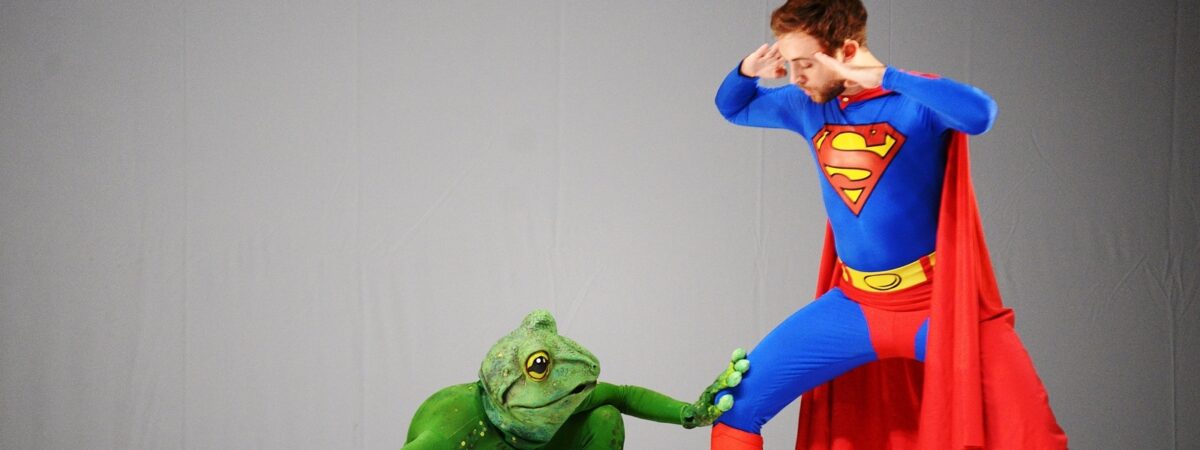 Un monde de figures hautes en couleur et d’apparitions fantasmagoriques, dans lequel une grenouille aux pattes d’ours croise parfois une princesse aux pouvoirs de super-héros… Une danse étonnante qui parle de travestissement et de métamorphose, entre déguisements d’enfants, culture populaire et tradition carnavalesque.